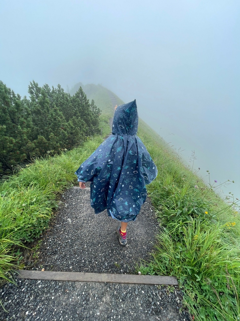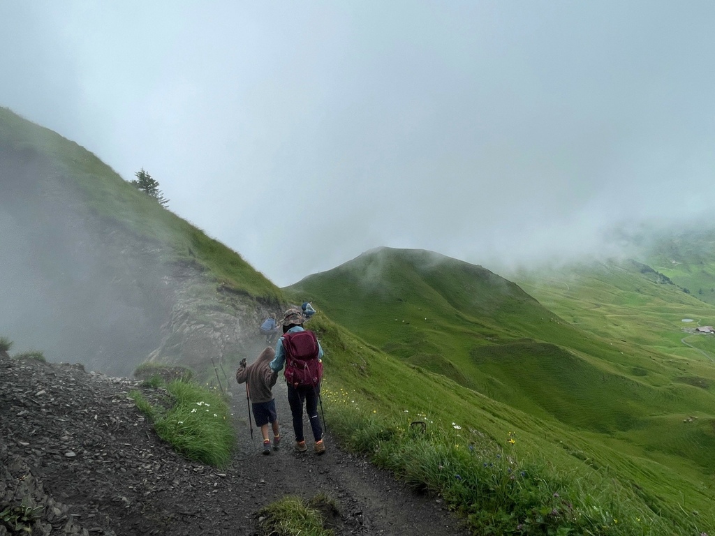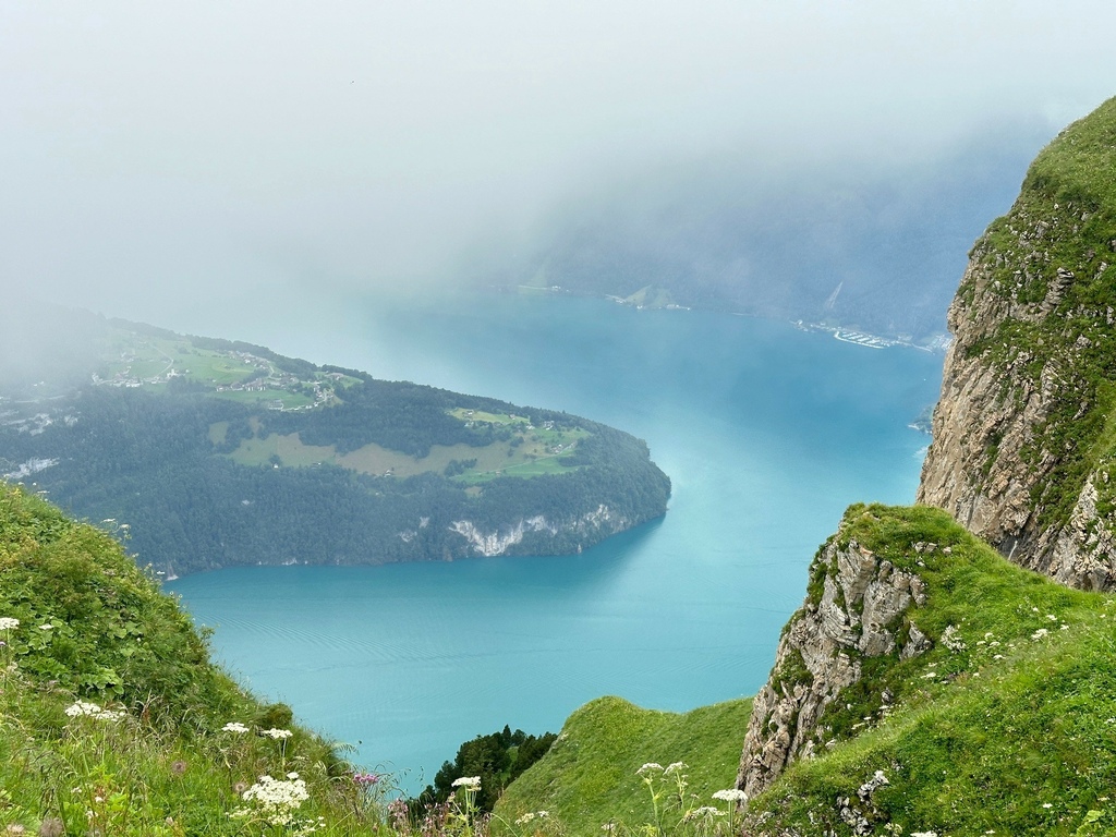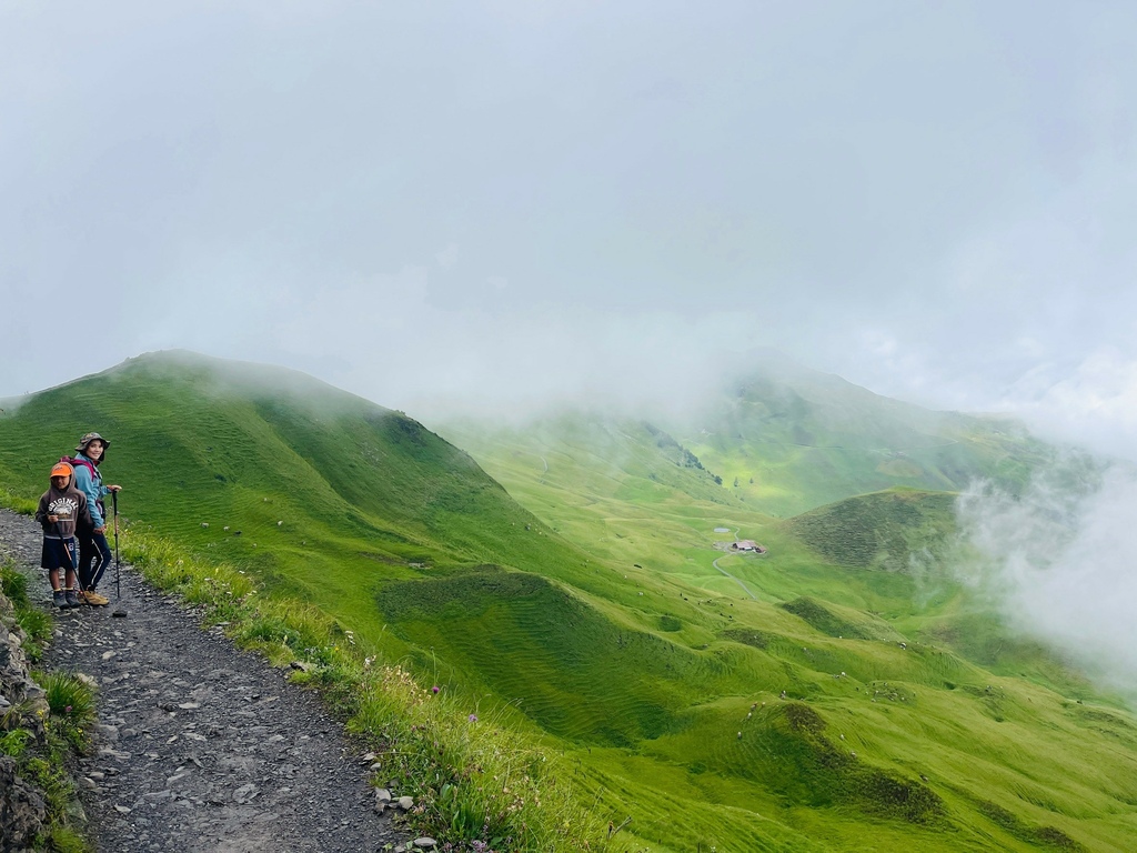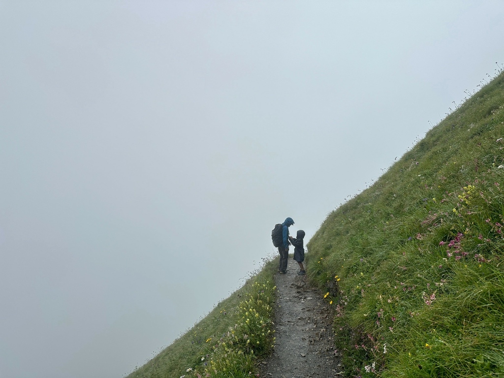 開車從Luzern出發約40車程即可抵達瑞士最陡纜車站Incline Railway Schwyz-Stoos Upper Station,我對纜車向來沒太大興趣,但是有人說這是瑞士最美的山脊步道我就熱血起來了,儘管一開始就是濃霧伺候,途中還經過大雨的攪局,但是咱一家三口很能適應這種插曲,健行路線從Klingenstock到另一座山頂Frohnalpstock,就在雨霧混合的天候中抵達終點Frohnalpstock時,天空竟然微微的開了,讓我們可以親眼看到如挪威峽灣般的Luzern湖景致,我不禁想著:若是天晴的時候來訪,我會不會以為自己到北歐了?