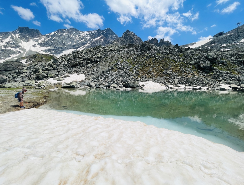 Pizol五湖健行原本計畫至少要走三座湖,結果七月中前往是五湖中最遠、海拔最高、也最美Wildsee湖的路線仍是冰封的狀態,儘管遇到幾個人仍是踩著冰雪前往,但考量安全,只能遙想了,儘管有點淡淡的哀傷,不過沿途的的景色以及小朋友在雪地玩耍的興奮之情,倒也彌補了些許遺憾,也許下次吧,我想某年的八月,再來一次。