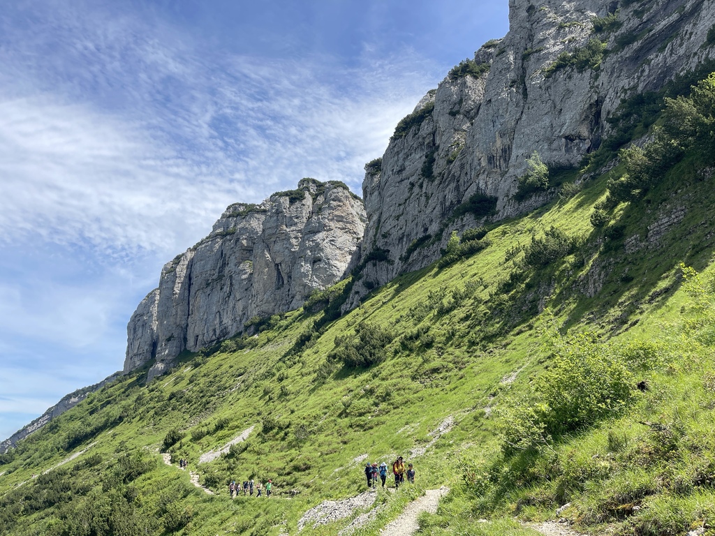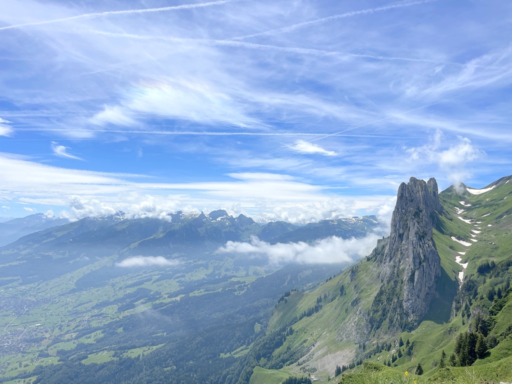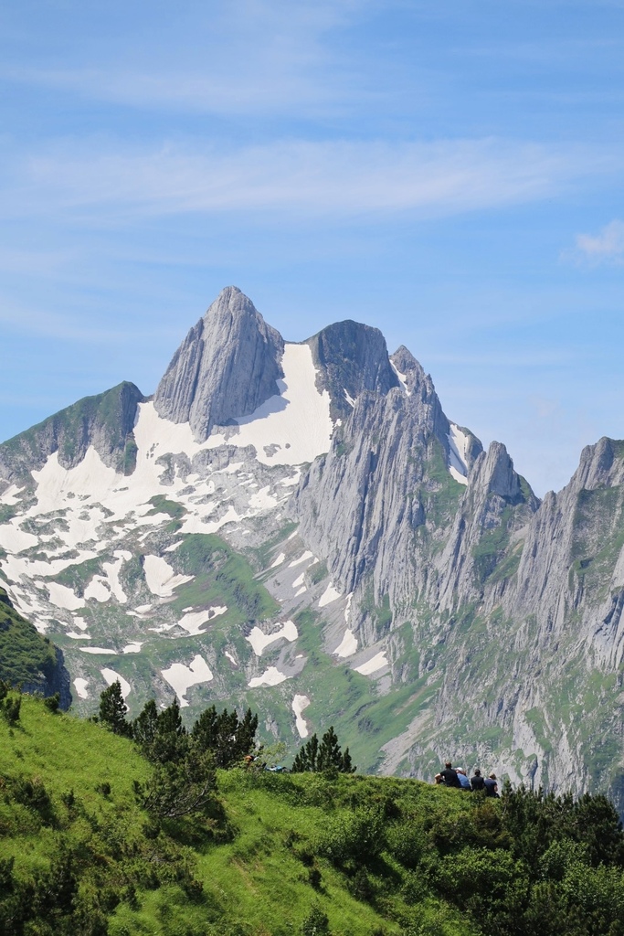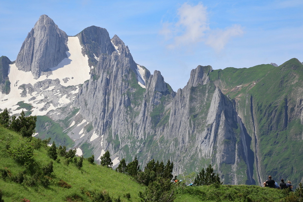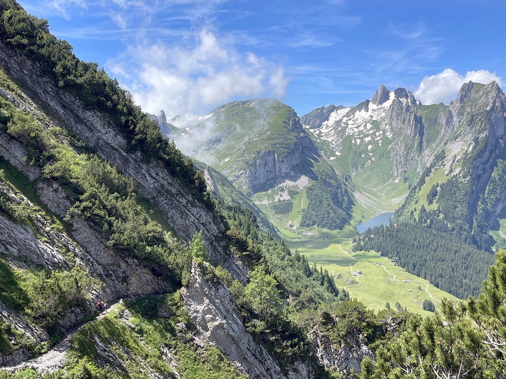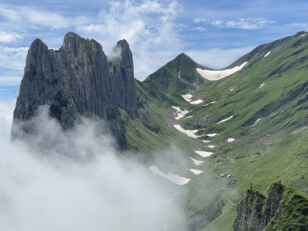 位於Appenzell 的Saxer Lücke 最高點海拔1822 公尺,我得承認我一開始就是被那特殊又聳立的山頭吸引的,咱家三口選擇從Staubern纜車站搭到山頂開始起登,一開始的絕美大景混合了高山湖泊和積雪,伴隨著寬度略小的步道上上下下卻也刺激,眼睛一直盯著最遠也最吸引目光的Saxer Lücke,來回6公里左右,走走停停4小時內可完成,沿途遊客不多,適合有人群恐懼症的旅人。