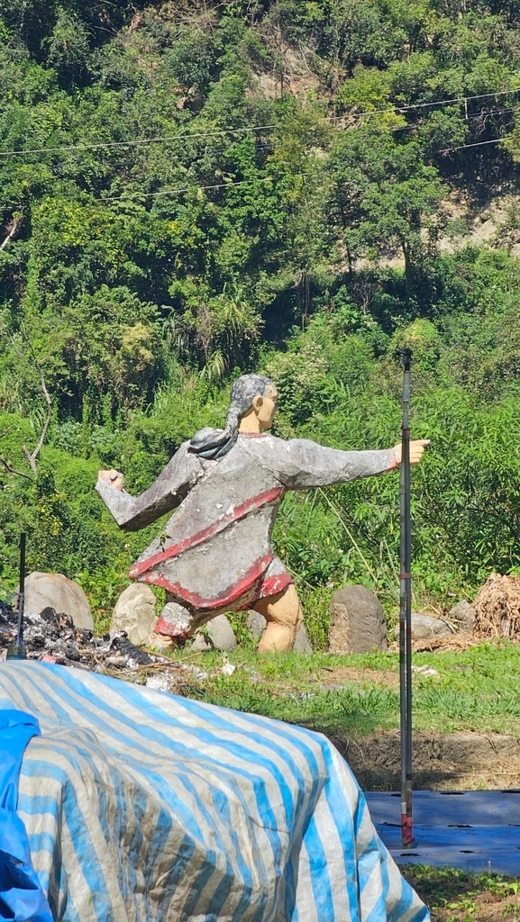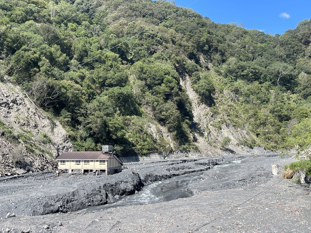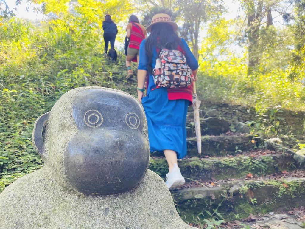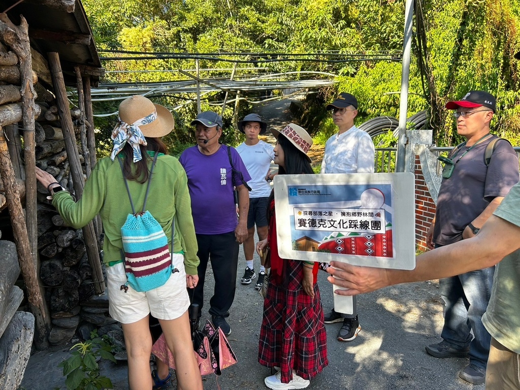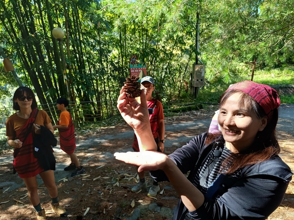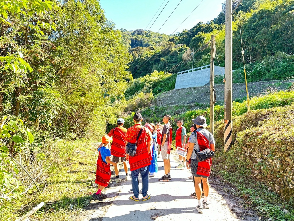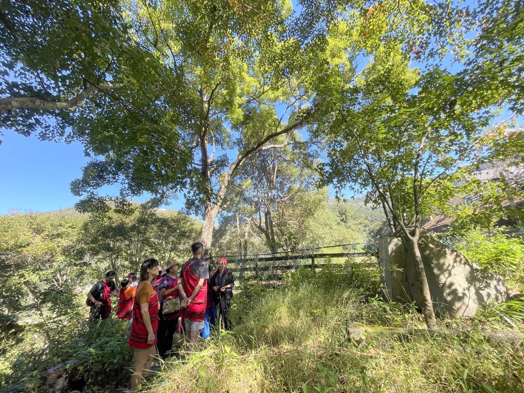 ↑第二天的行程就是從沙庫斯露營區健行到「莫那魯道故居」,兩位在地導覽員領著團員在山林間緩緩走著,同時介紹著沿途的生態與人文,當導覽員帶領著大家走在崎嶇不平的山徑時,那些眼前早已毀壞的地貌讓2023年卡努颱風帶來的豪雨讓土石流一再來,崩塌一再崩的畫面彷彿在眼前凍結,導覽言說的雲淡風輕,我們卻為當時他們曾遭遇過的寸步難行以及高空空投補給物資的日子而膽戰心驚。