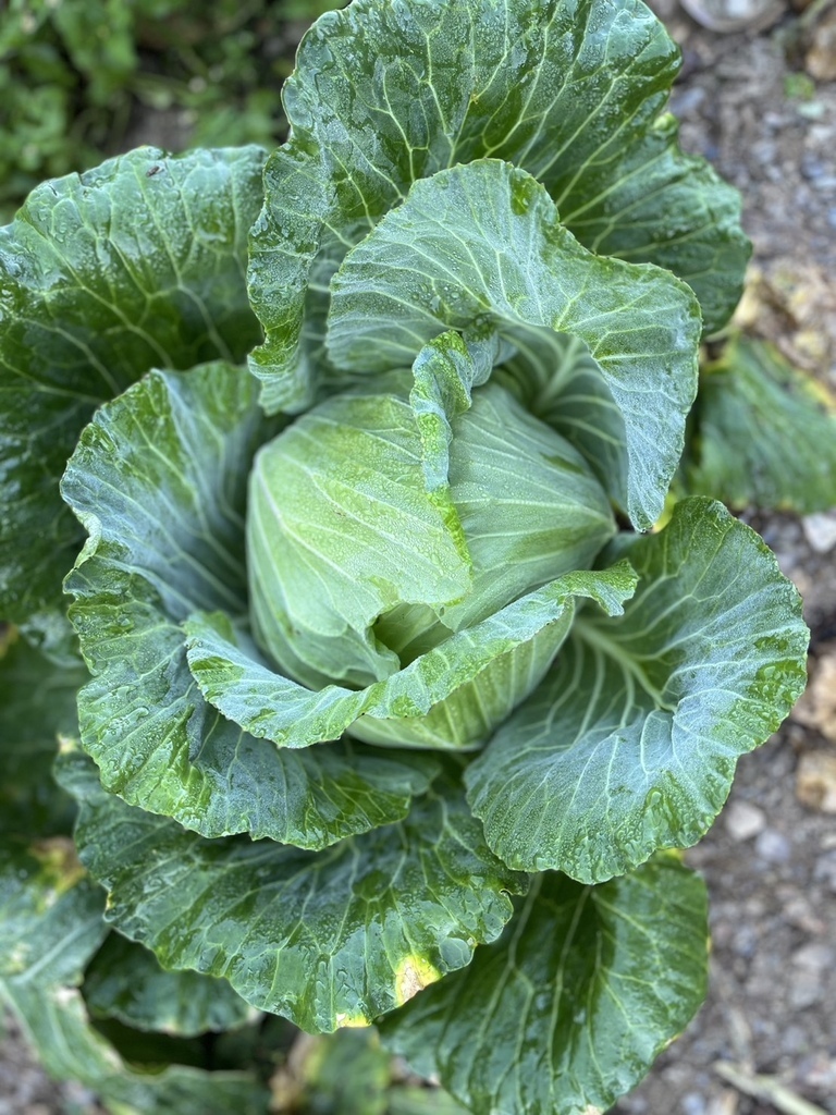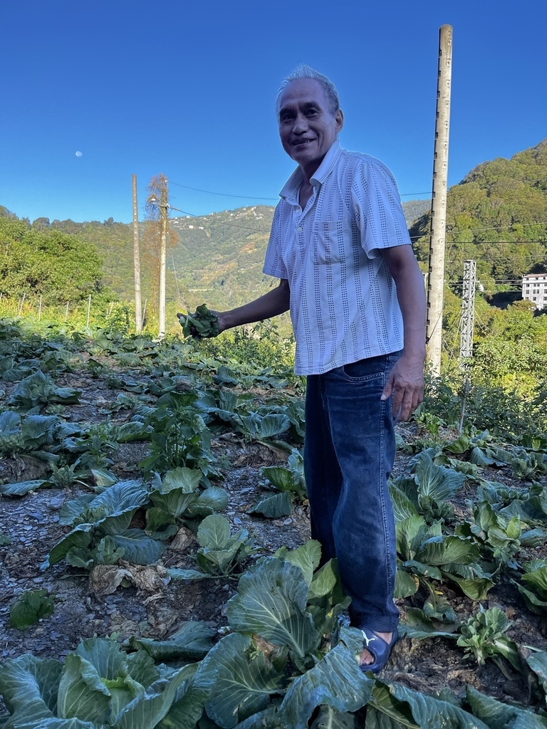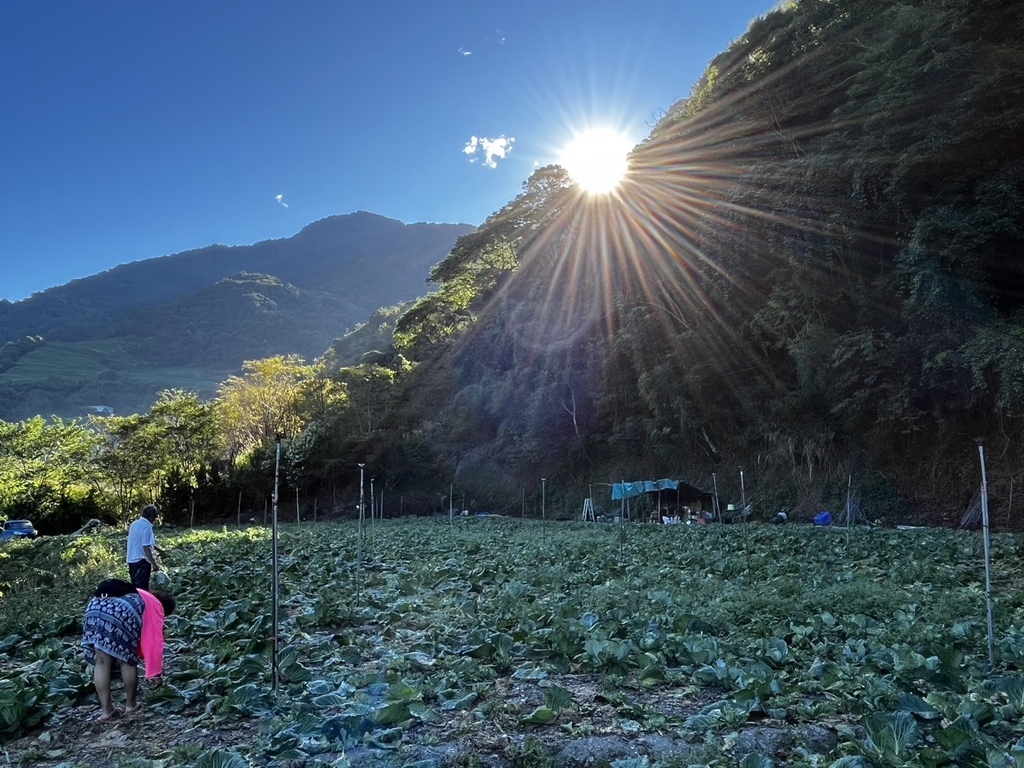 ↑第二天清早,團員跟著民宿主人去採高麗菜,一顆50元,清脆又香甜!