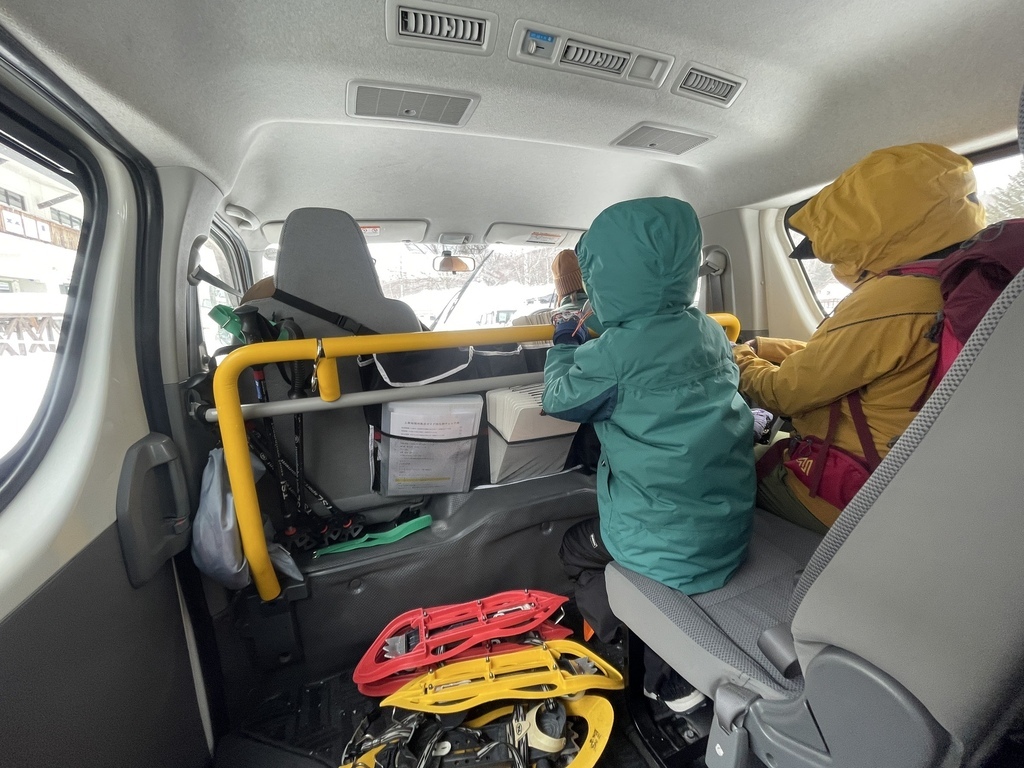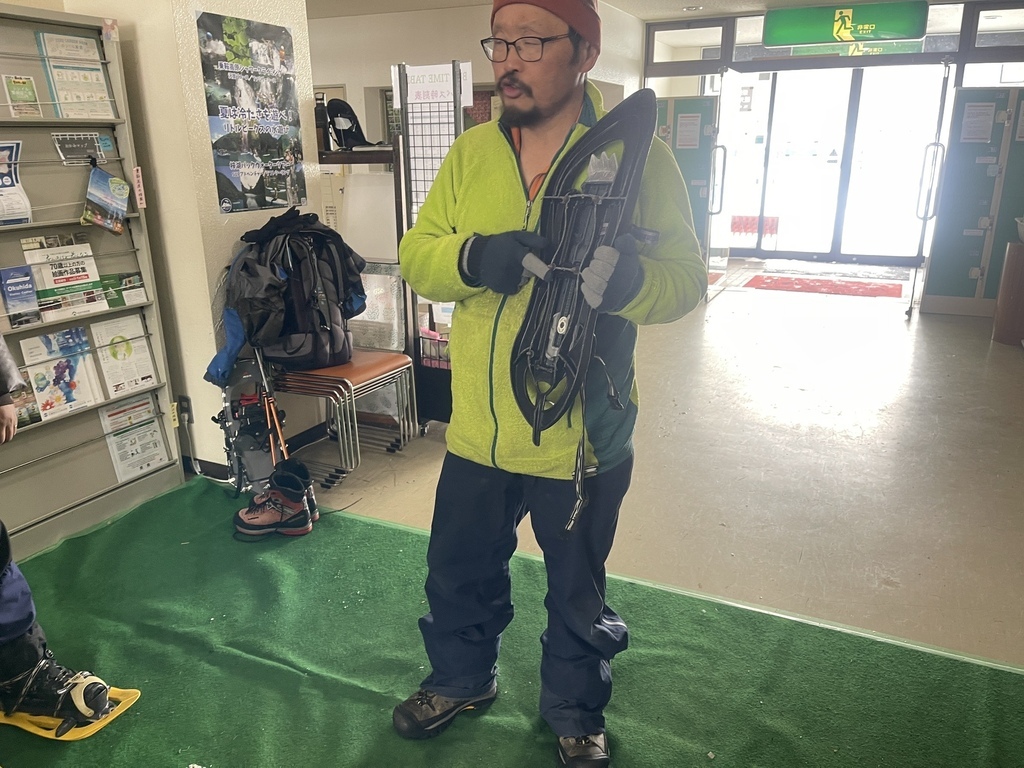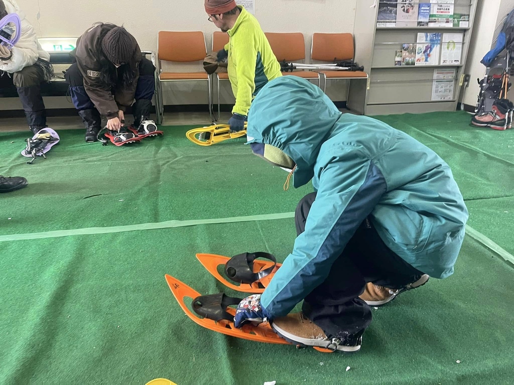 ↑Littlepeaks 這間戶外運動公司就位在乘鞍高原觀光中心內,裏頭的服務人員都非常友善,不管是我們的嚮導 Rocky 或是開接駁車的員工,都像室內的暖氣一樣熱呼呼。在觀光中心整備完後,搭接駁車一小段路後即下車開始健行!