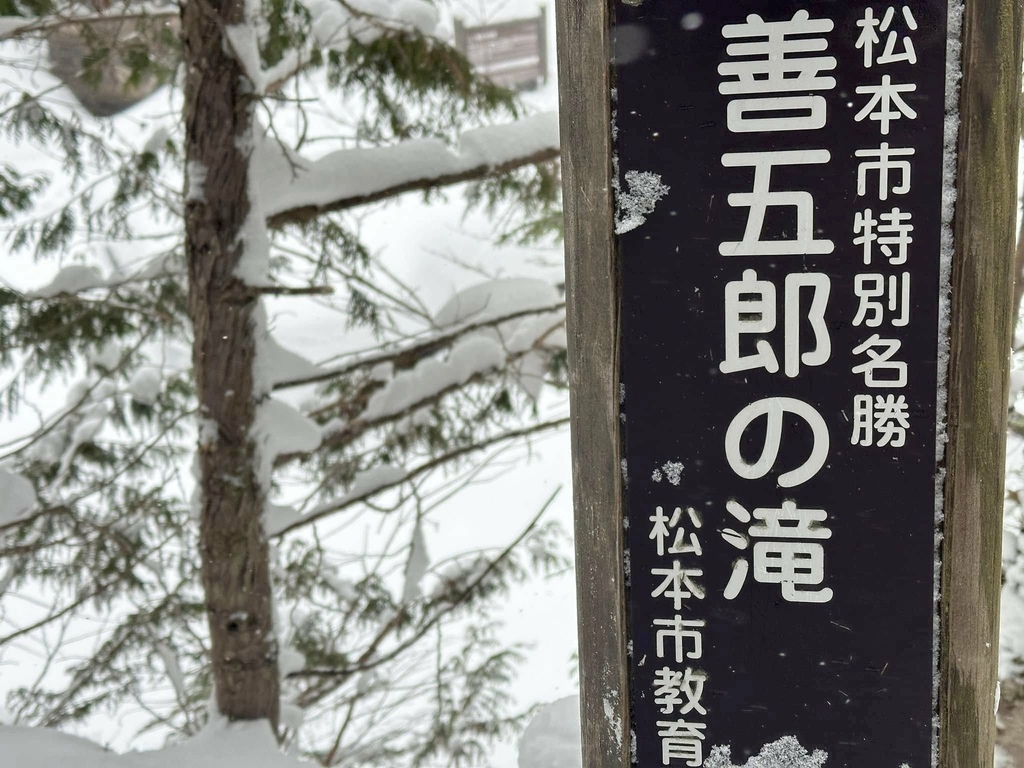 初見「善五郎の滝」的指標時,聲音唸到第五個字就止住了,想要有邊讀邊,才發現「滝」其實就是「瀧」這個字,心裡不禁發出了「啊」的驚覺,就像鮮少冬季健行的我從來不知道這座高1525公尺,寬8公尺,落差來到21.5公尺的善五郎瀑布在零下五度的冬季時會是這副令人讚嘆的模樣。